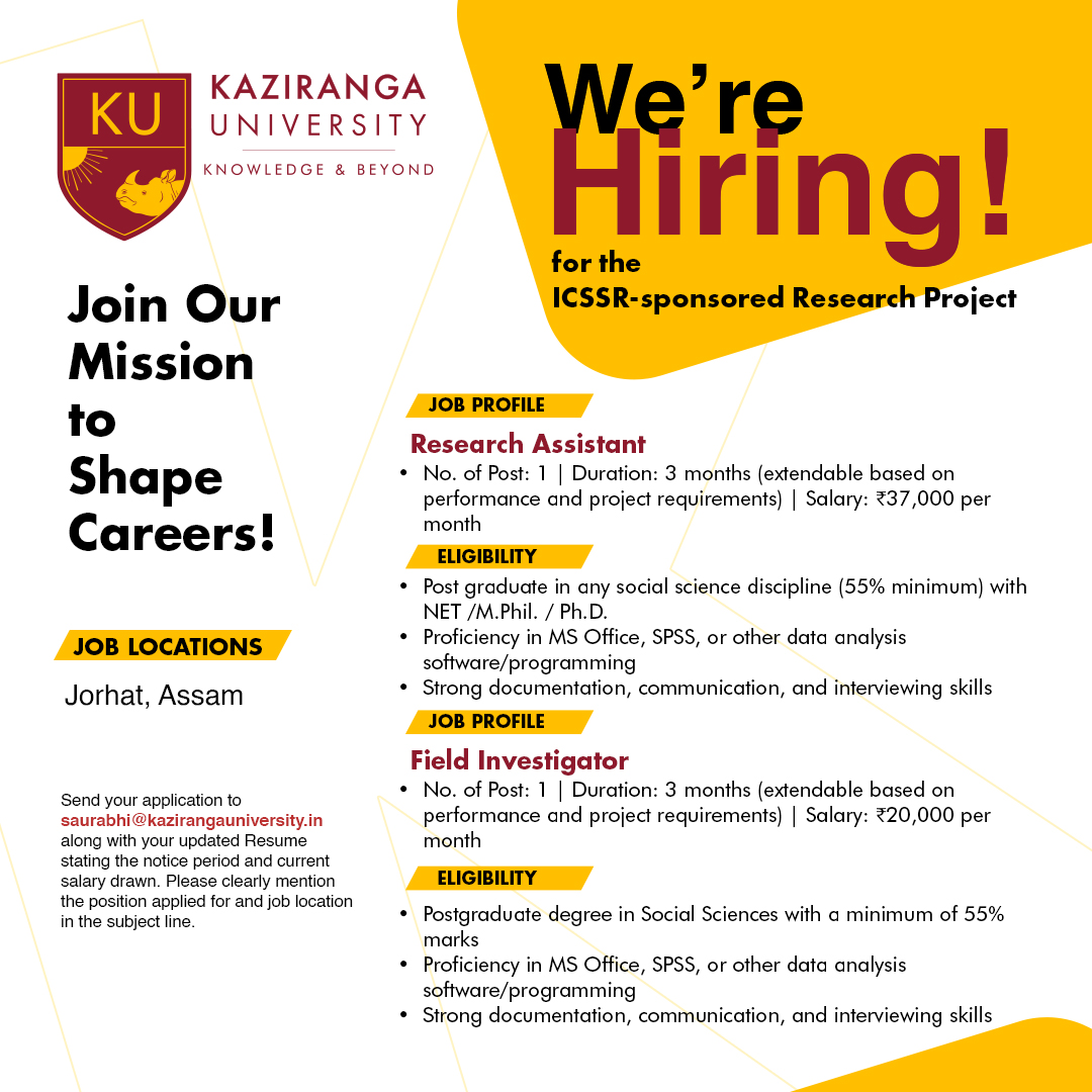 We invite you to explore faculty and non-faculty opportunities at Kaziranga University