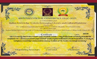 Topic of my presentation: Youth, Digital Media and Cultural Preservation: A Study on Indigenous Knowledge Communication among Students of Assam Kaziranga University