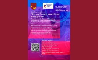 On 25 October 2025, School of Computing Sciences hosted a one day workshop on “Recent Trends in Artificial Intelligence” for the class IX students of Carmel School Jorhat. The Program duration was 2 Hrs and covered topics like Fundamentals of AI, AR/VR, Gen AI and Agentic AI with live demonstrations by the experts. 130 students from Carmel School Jorhat attended the event. The sessions were interactive and made with aims to introduce and expand the student’s knowledge of AI , which is one of the most prevalent topics of this generation.