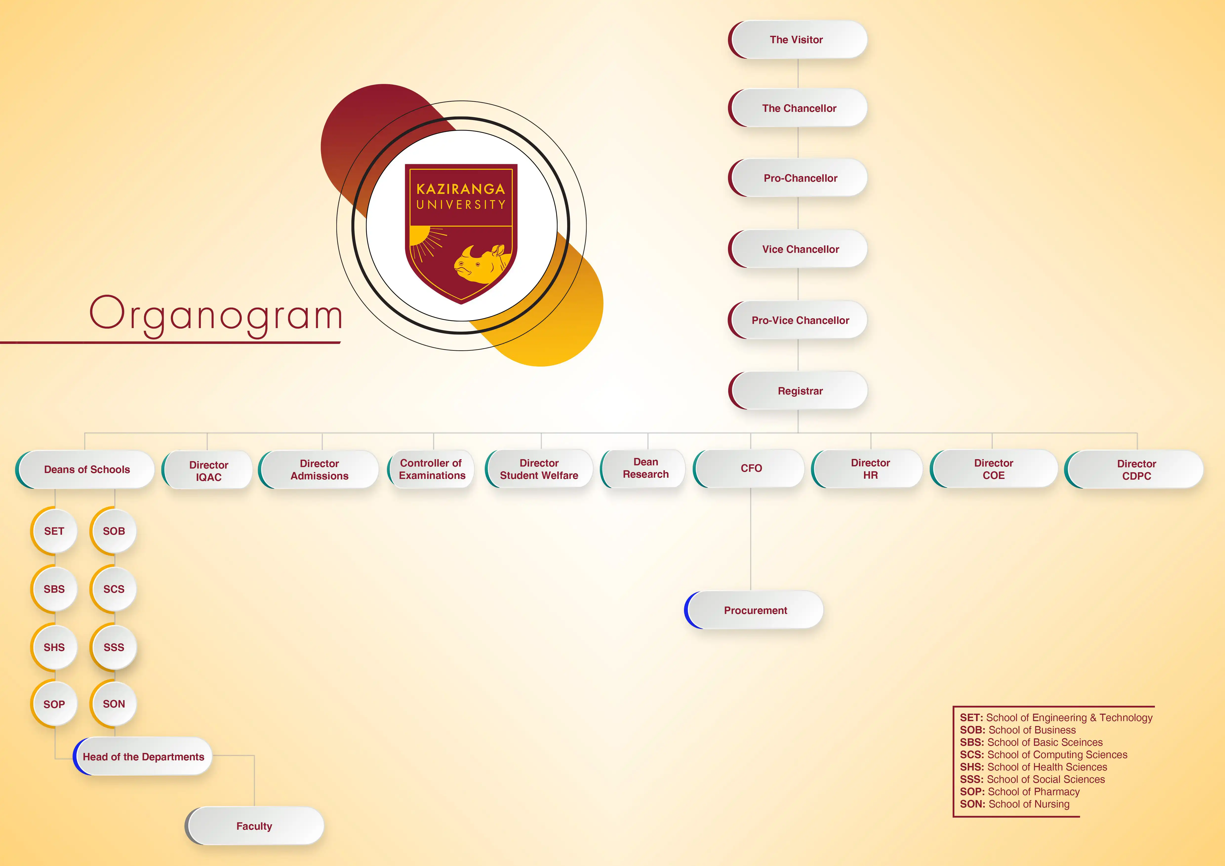 <p>Founded in 2012, The Assam Kaziranga University well known as KU is one of the largest private universities in North-East India. The Assam Kaziranga University has been established under the Assam Private University Act No. XII of 2007, offering state-of-the-art education and research relevant to market needs. The University has been promoted by the Trust under the banner of The North Eastern Knowledge Foundation (NEKF) and founded in the year 2012 by the Khetan Industrial Group.</p> <p>The social sensitivity and responsible entrepreneurship of both the groups have helped them to imbibe a culture of proedification in their endeavour and give back the knowledge and experience to the society that they have gathered over years of service to the nation.</p> <p>The KU insignia attempts to visualize the guiding mission and driving spirit of the University. The one-horned rhino, available nowhere else in the world but the Kaziranga belt, symbolizes uniqueness. It also stands for steadfast concentration in one's pursuit, overcoming obstacles of all kind coming in the way.</p> <p>The one-horned rhino in the logo represents a confident and disciplined lifestyle that is not drifting aimlessly, but is respectfully connected to its roots. The sun on the top right corner, the timeless star of life, symbolizes knowledge as the eternal source of enlightenment. Overall, the shield is supposed to protect us from the invasion of ignorance in our lifelong pursuit of true knowledge and its humanist applications beyond.</p> <p>The golden border hints at the shining glory that rewards every stellar performance upon completion.</p>