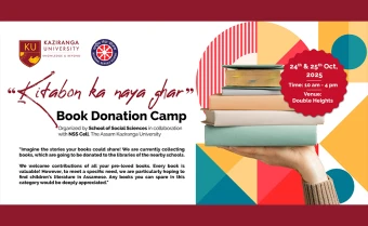 The students of School of Social Sciences organised a book donation camp where all the students, faculty and staff of the university were encouraged to donate books suitable for children. The idea was to collect the books, repair them if needed and sort them according to language and age appropriateness. The drive was able to collect 170+ books in Assamese, English and Hindi. The drive saw students and faculty from various departments of the university participating. A lot of reference and textbooks were collected apart from fiction, comics etc.